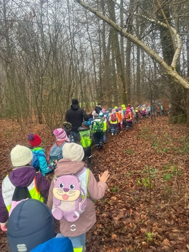 Die Kindergartenkinder sowie die Schülerinnen und Schüler der 1. und 2. Klasse machten sich gemeinsam auf den Weg in den Wald zum Samichlaus und Schmutzli. Dort sangen die Kinder drei schöne Lieder und jede Stufe trug dem Samichlaus und Schmutzli ein eigenes Versli vor. Mit vielen warmen und ermutigenden Worten begrüsste der Samichlaus alle Kinder und schenkte ihnen einen besonderen Moment der Adventsfreude.